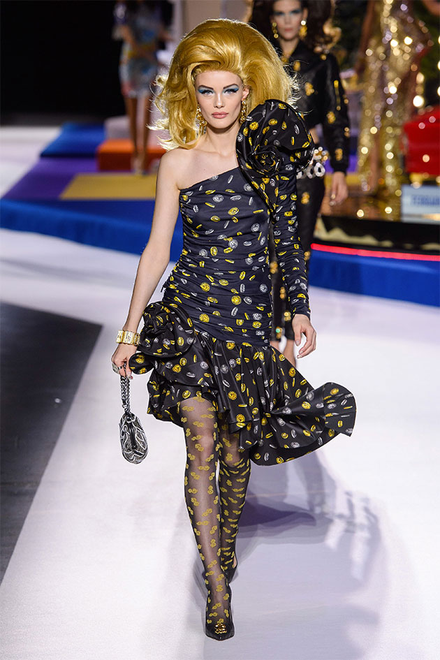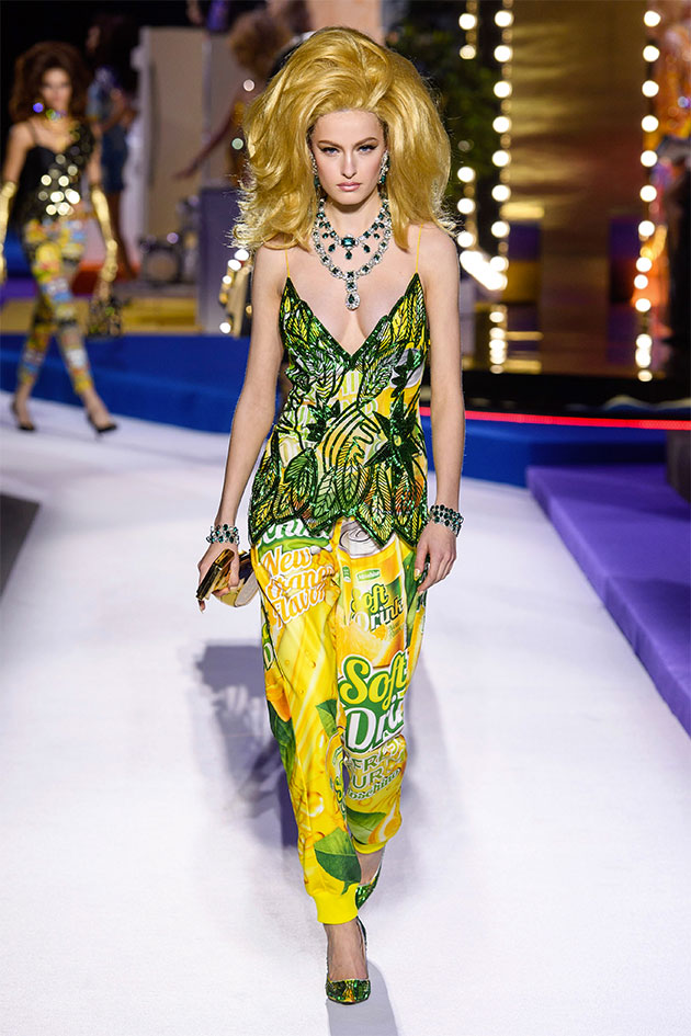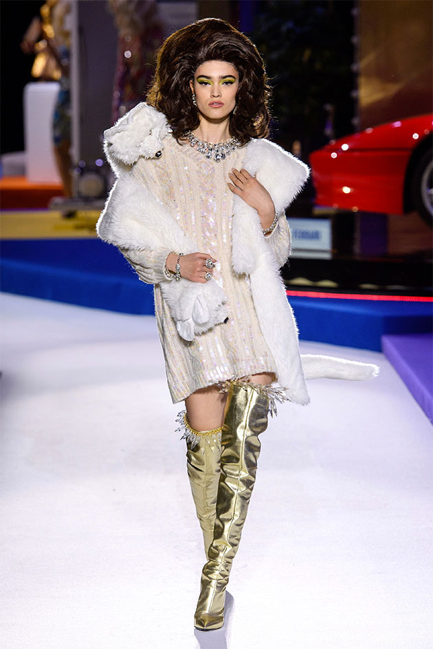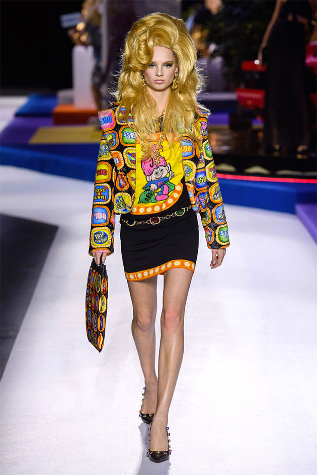 “The Price Is Right” é o nome de um dos programas de TV mais longevos da TV americana – no ar por 46 anos, ele convida os participantes a adivinharem o preço de itens. Bem capitalista, né? E é nesse programa que Jeremy Scott se inspira pro outono-inverno 2019/20 da Moschino apresentado na Semana de Moda de Milão: uma coleção escapista e abusada, como o de costume.