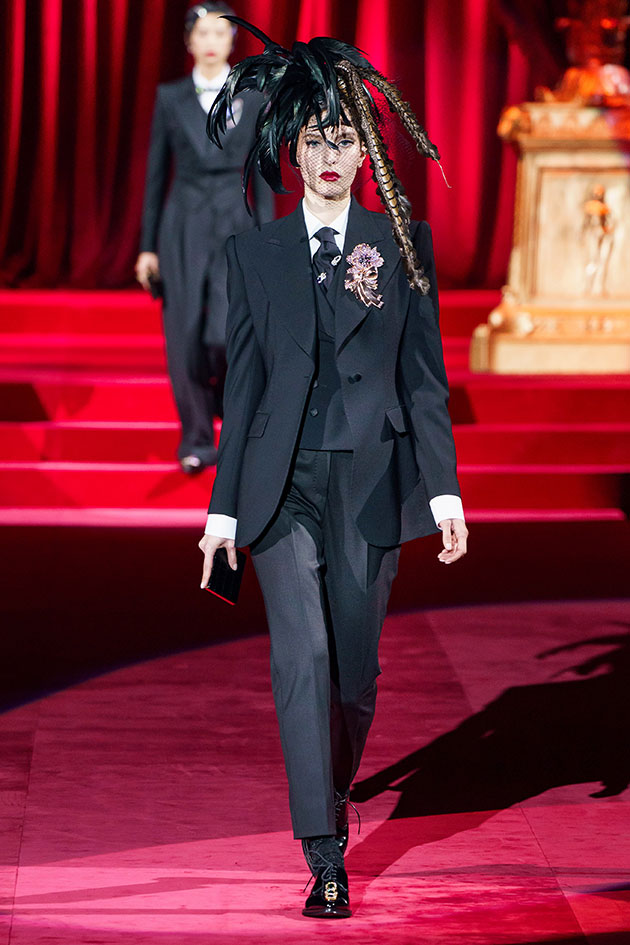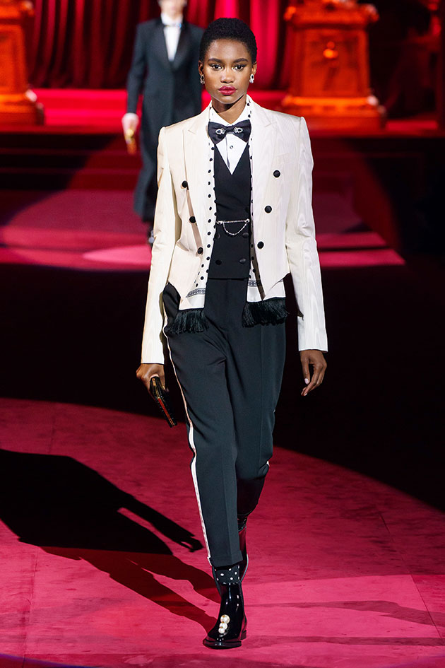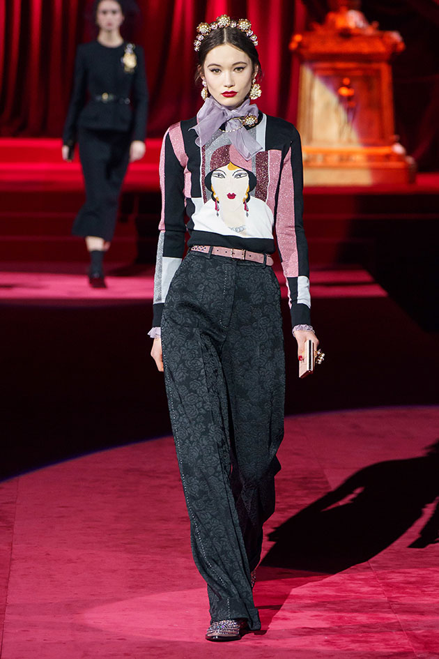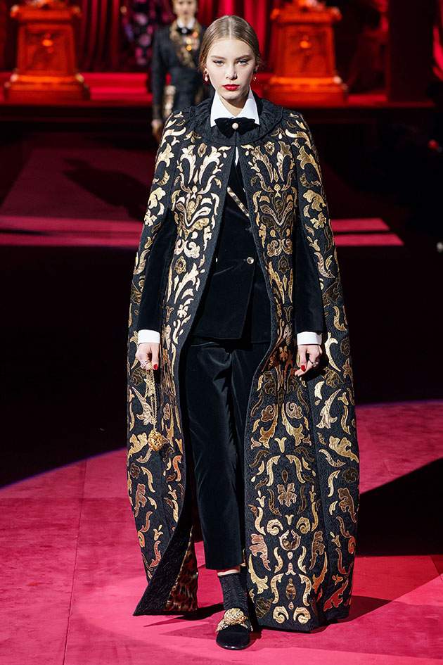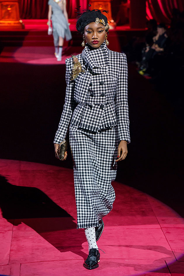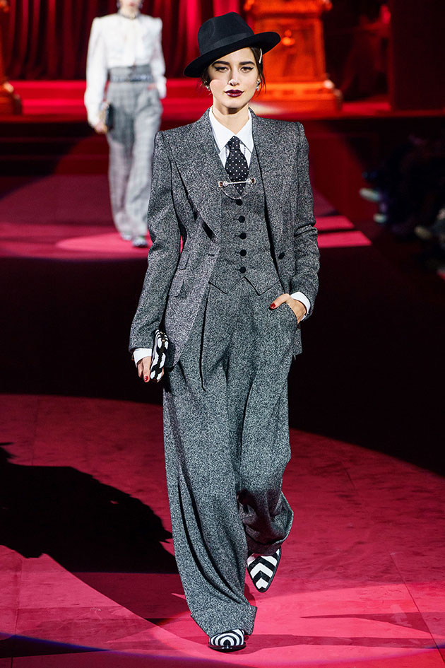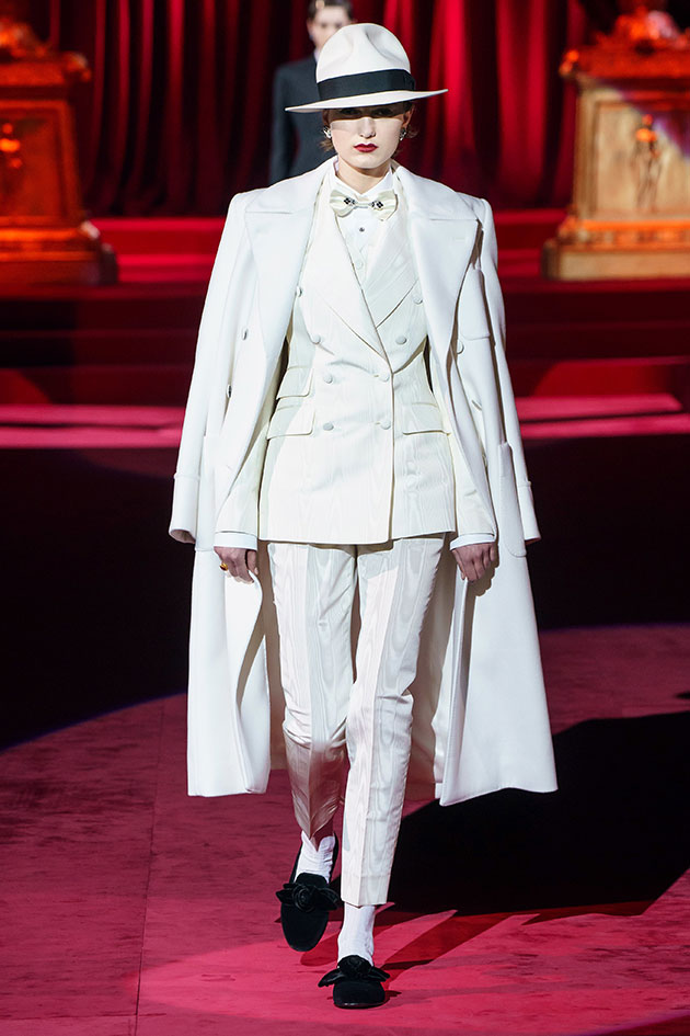 A Gucci foi acusada recentemente de racismo, a Prada também. Mas antes disso, a Dolce & Gabbana chegou a ter um desfile cancelado na China, também por causa de racismo (entenda melhor aqui nesse link). E esse foi apenas a última das polêmicas na qual a marca se envolveu. Pro outono-inverno 2019/20 apresentado na Semana de Moda de Milão, ela decidiu jogar um “jogo ganho” – um mestre de cerimônias apresentou uma lista enorme de clássicos da casa, que começou na alfaiataria gender bender, foi pra um boudoir chic com pele debruada, entrou na estampa de oncinha, explodiu num jardim florido, se segurou na lã cinza com saia lápis e calça de alfaiataria ampla de cintura alta, pintou em cores extravagantes e desenhos de mulher e do universo feminino, romantizou em noivas, voltou pra um floral em pegada mais kitsch de casaca a paetê, e finalmente se enlutou naquele look viúva sexy com direito a rendas e transparências. Pros clientes e fãs? Tá tudo ótimo, tudo molto D&G. Veja mais na galeria.