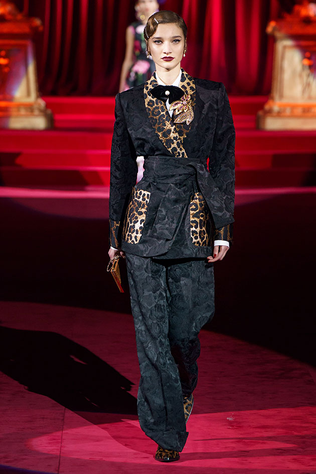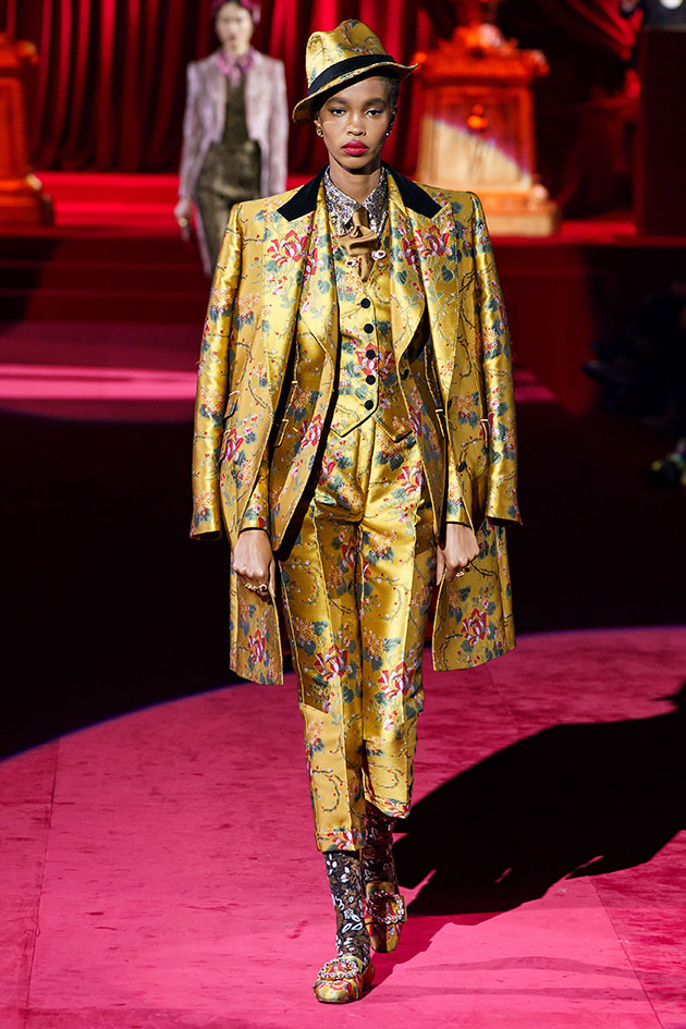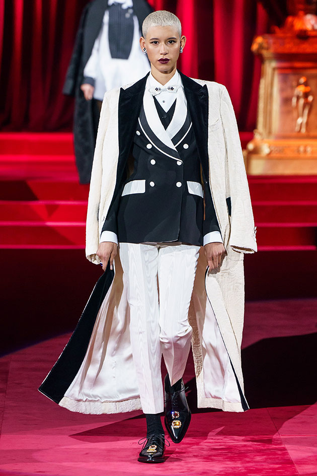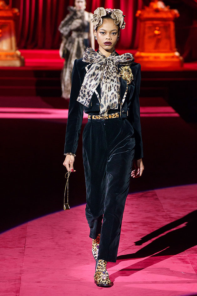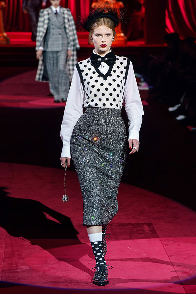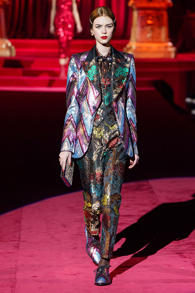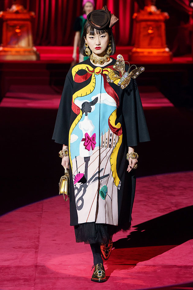 A Gucci foi acusada recentemente de racismo, a Prada também. Mas antes disso, a Dolce & Gabbana chegou a ter um desfile cancelado na China, também por causa de racismo (entenda melhor aqui nesse link). E esse foi apenas a última das polêmicas na qual a marca se envolveu. Pro outono-inverno 2019/20 apresentado na Semana de Moda de Milão, ela decidiu jogar um “jogo ganho” – um mestre de cerimônias apresentou uma lista enorme de clássicos da casa, que começou na alfaiataria gender bender, foi pra um boudoir chic com pele debruada, entrou na estampa de oncinha, explodiu num jardim florido, se segurou na lã cinza com saia lápis e calça de alfaiataria ampla de cintura alta, pintou em cores extravagantes e desenhos de mulher e do universo feminino, romantizou em noivas, voltou pra um floral em pegada mais kitsch de casaca a paetê, e finalmente se enlutou naquele look viúva sexy com direito a rendas e transparências. Pros clientes e fãs? Tá tudo ótimo, tudo molto D&G. Veja mais na galeria.