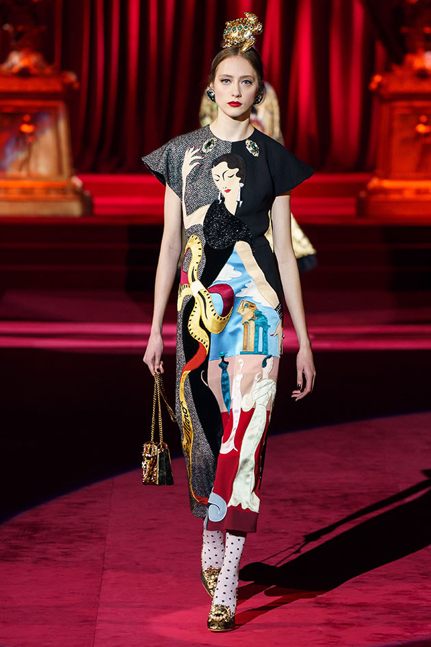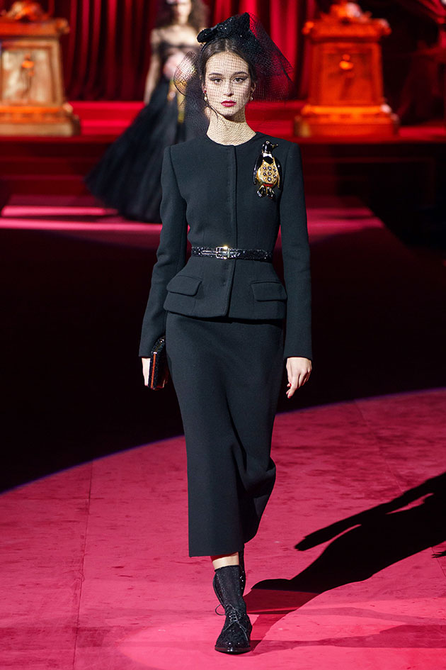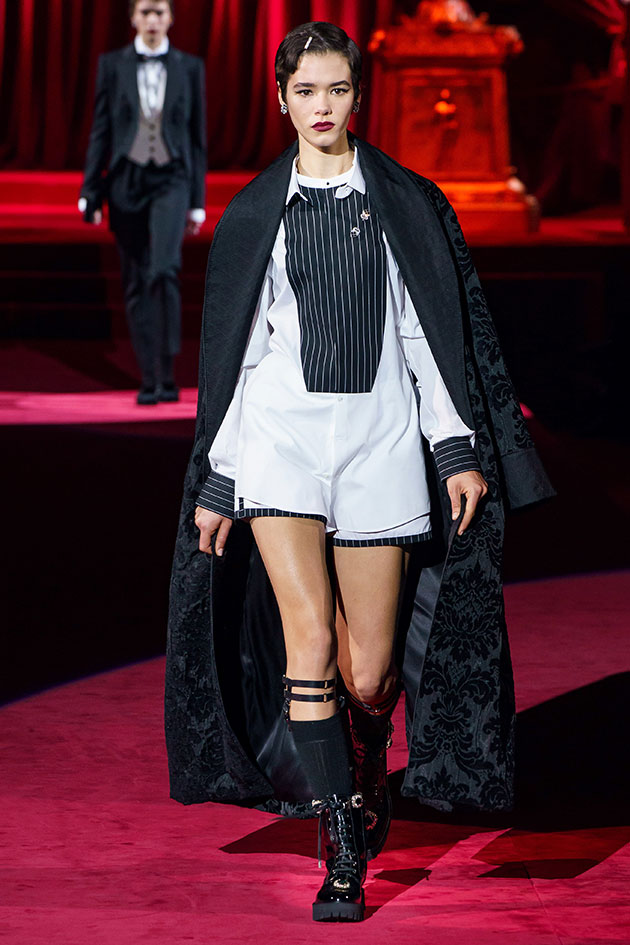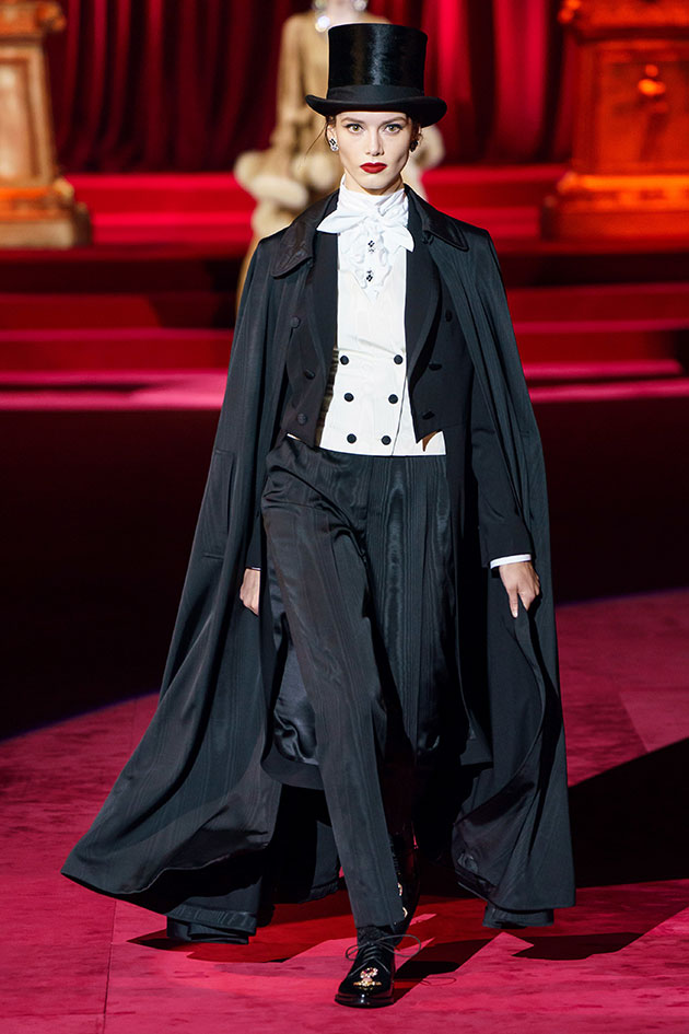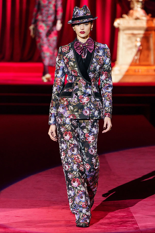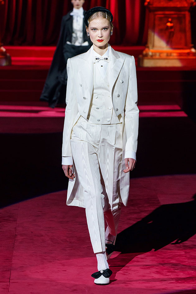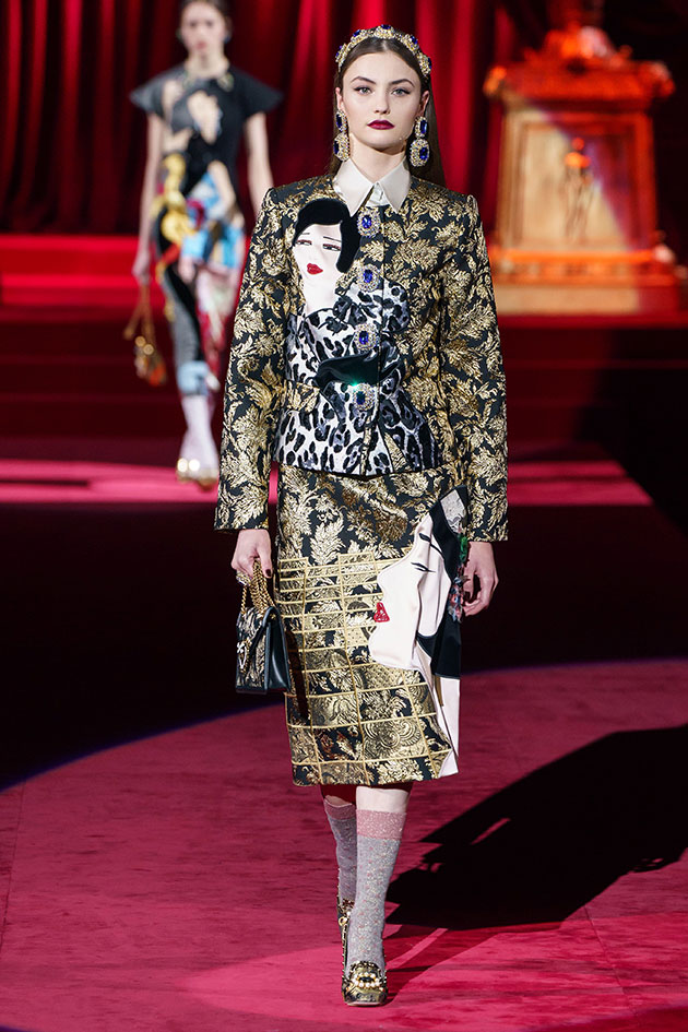 A Gucci foi acusada recentemente de racismo, a Prada também. Mas antes disso, a Dolce & Gabbana chegou a ter um desfile cancelado na China, também por causa de racismo (entenda melhor aqui nesse link). E esse foi apenas a última das polêmicas na qual a marca se envolveu. Pro outono-inverno 2019/20 apresentado na Semana de Moda de Milão, ela decidiu jogar um “jogo ganho” – um mestre de cerimônias apresentou uma lista enorme de clássicos da casa, que começou na alfaiataria gender bender, foi pra um boudoir chic com pele debruada, entrou na estampa de oncinha, explodiu num jardim florido, se segurou na lã cinza com saia lápis e calça de alfaiataria ampla de cintura alta, pintou em cores extravagantes e desenhos de mulher e do universo feminino, romantizou em noivas, voltou pra um floral em pegada mais kitsch de casaca a paetê, e finalmente se enlutou naquele look viúva sexy com direito a rendas e transparências. Pros clientes e fãs? Tá tudo ótimo, tudo molto D&G. Veja mais na galeria.