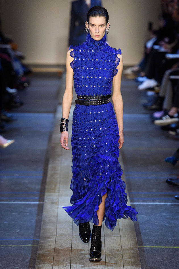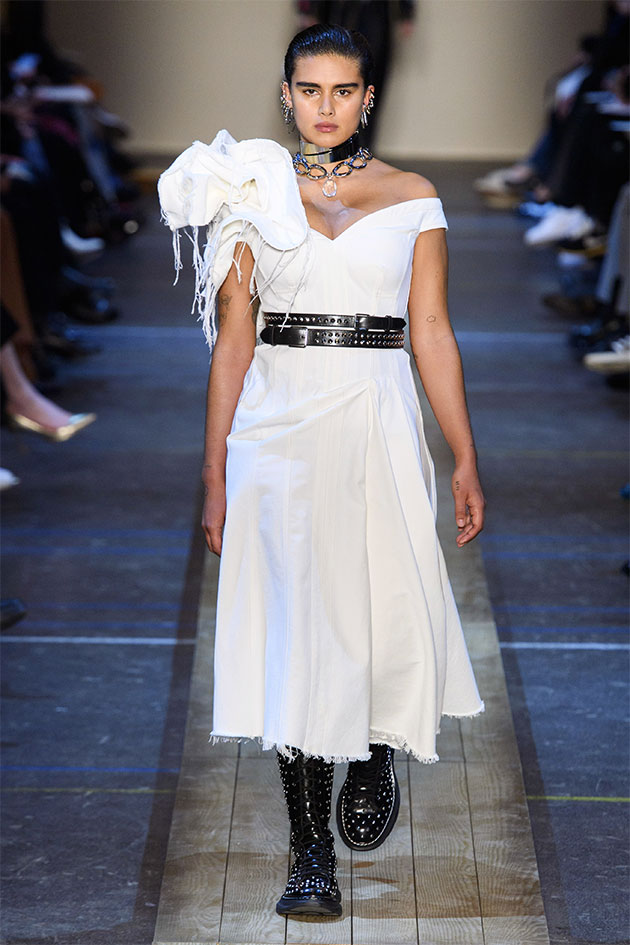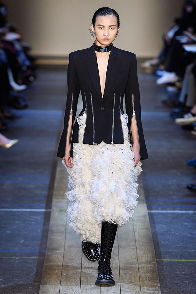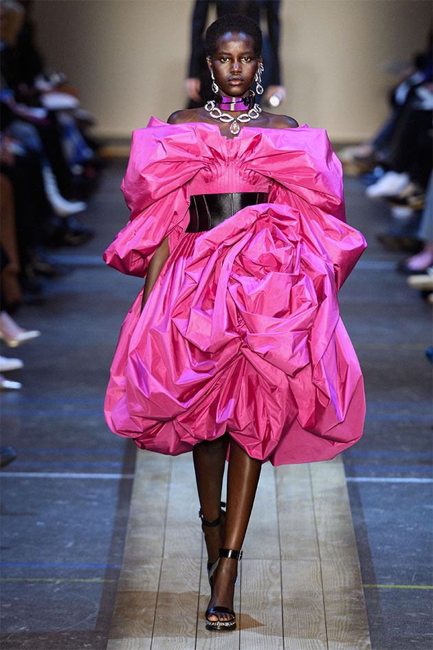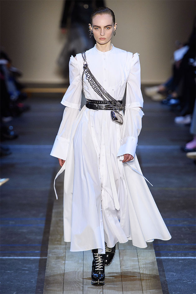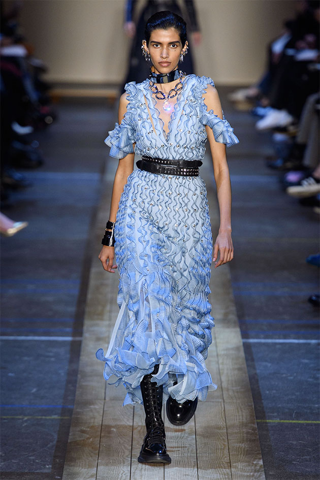 Nesse outono-inverno 2019/20 apresentado na Semana de Moda de Paris, a estilista Sarah Burton olhou pras cidades que giram em torno de fábricas de tecido no norte da Inglaterra, locais que inclusive fornecem material pra alfaiataria primorosa produzida pela Alexander McQueen. Daí vem os paletós assimétricos do começo do desfile, onde você vê uma faixa de identificação da fazenda na barra mais comprida; as rainhas da primavera dos festivais das cidades nas rosas de tecido e nos florais; o look das sufragistas. E, claro, sempre aquele trabalho incrível de ateliê da marca. Veja mais na galeria!