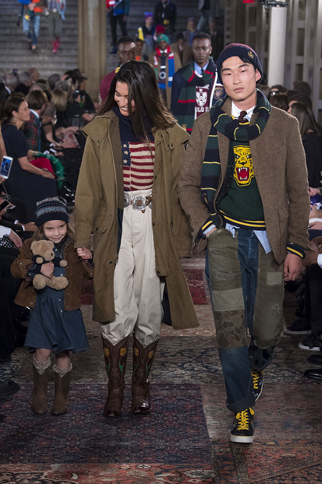 A parte mais comovente do evento foi a passagem dos looks da linha Polo Ralph Lauren , lá pra metade do desfile! Essa seção parecia uma homenagem à moderna família americana: diversa , inclusiva e plural . E o que essa família veste? Os mais adorados trajes da grife: jaquetas universitárias, blazers de tweed, camisas polo em cores primárias e, claro, tricôs com desenhos de de ursinho de pelúcia! Vem ver mais fotos na galeria – é só clicar na imagem!