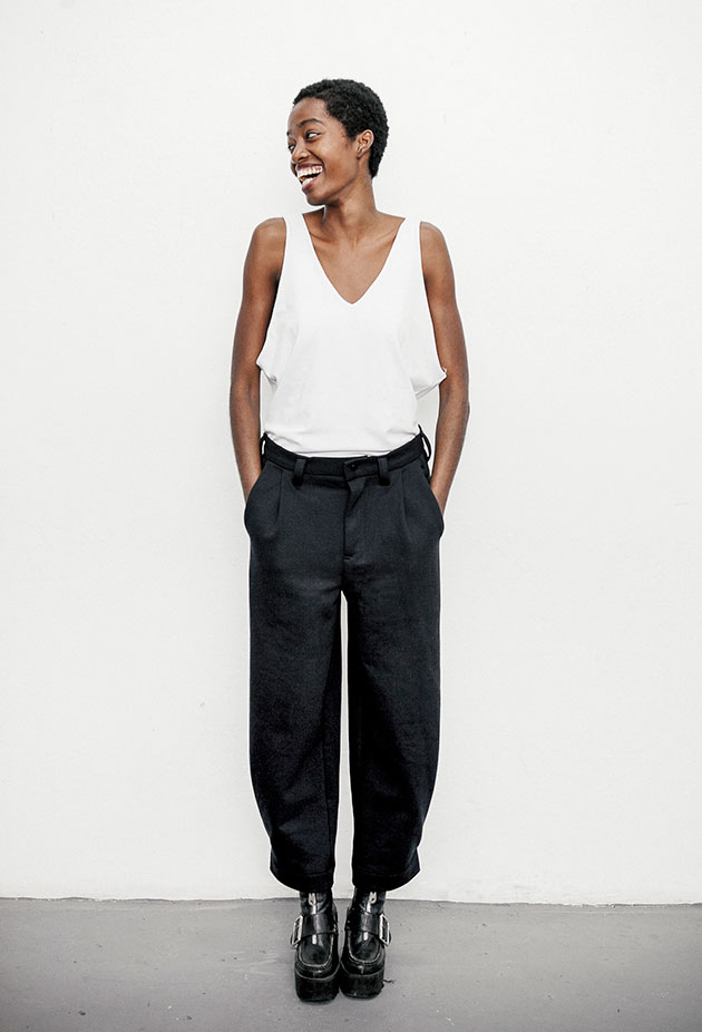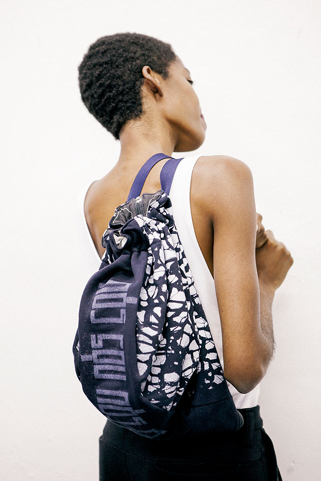 Patricia Araujo e Raphael Villar/DivulgaçãoA regata-bolsa é uma proposta de Mayra Sallie, empreendedora em upcycling, com colaboração de Carmen, Leandro Castro e a estilista e artista Zina Leal. A calça é de Carmen e Jorge