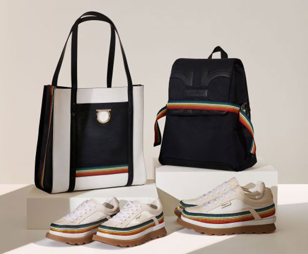 As peças (uma mochila, um calçado e uma bolsa) são inspiradas na icônica sandália plataforma Rainbow criada em 1938 pra atriz Judy Garland. Só que agora as fitas coloridas presentes nos acessórios são feitas com uma fibra de plástico reciclado. E a palmilha do tênis é orgânica, feita com milho! Clica na galeria pra dar uma olhada!