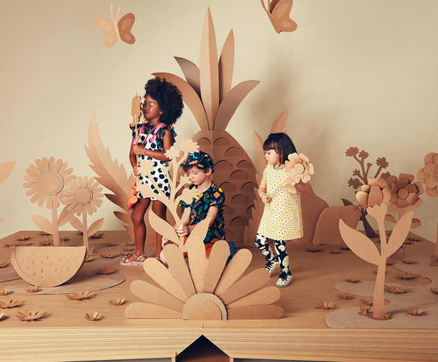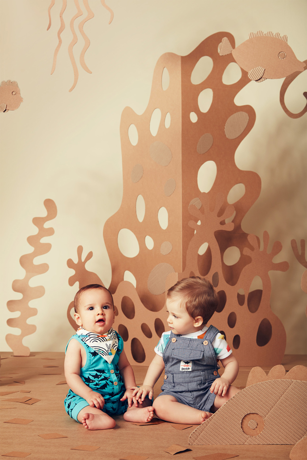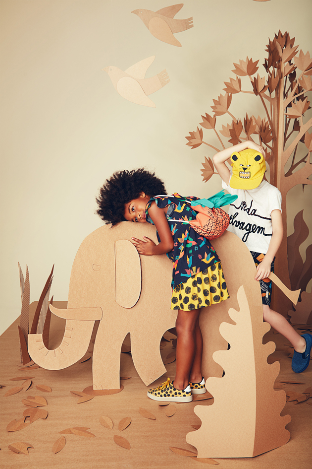 A coleção conta com 3 temas principais: o primeiro explora o fundodomar, com estampas de peixinhos, algas, flores e outros animais que remetem ao universo marítimo, e é focado em peças pra recém-nascidos (bodies, macacões e conjuntinhos)! Já o segundo traz calças,vestidos e camisetas com padronagens de jardins floridos, que vão do delicado e suave ao gráfico e moderno, pra crianças de 1 a 5 anos. O terceiro tema é pros pequenos de 6 a 12 anos e apresenta uma selva cheia de fantasias, retratada a partir de elementos das florestas, como onças, leopardos, flamingos e folhagens!