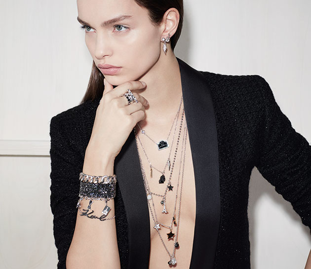 A parceria entre Karl Lagerfeld e a Swarovski foi anunciada durante o Baselworld 2017! E anteciparam o lançamento da 1ª coleção de joias femininas de Karl justamente por conta da parceria, que chega às lojas no 2º semestre de 2017. As peças vão custar entre € 50 (cerca de R$ 170) e € 250 (cerca de R$ 880), com acabamento em ródio, ouro rosê e ouro amarelo nos colares, anéis, brincos e braceletes em tamanhos ajustáveis.