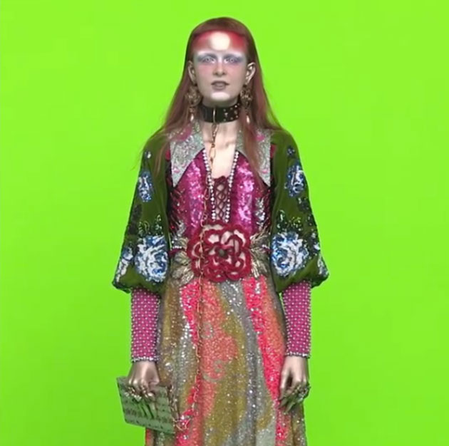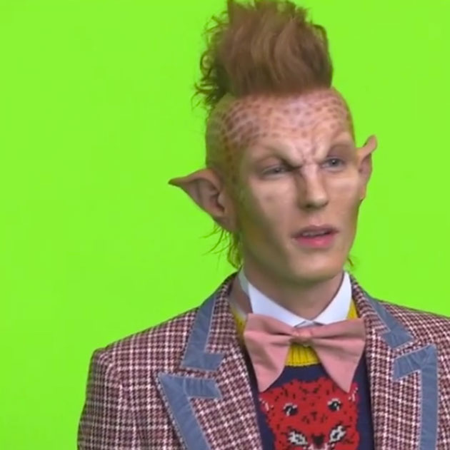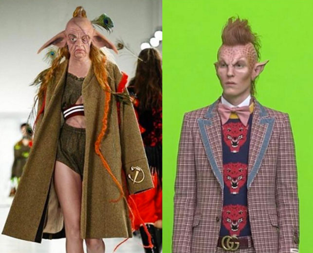 Nessa última quinta, dia 20/04, a Gucci começou a soltar vídeos que mostravam o casting de sua nova campanha de outono-inverno 2017, feitos por Glen Luchford. O tema é alienígena, incluindo uma modelo à Ziggy Stardust com um sol maquiado na testa, um rapaz prateado com piercing no septo e sobrancelha com listras raspadas, um ser com aqueles olhos gigantes típicos da representação de um ET na ficção e… um outro com as orelhas pontudas e um topete meio moicano. Acontece que esse último é extremamente parecido com um trabalho do estudante da respeitada Central Saint Martins Pierre-Louis Auvray, que desfilou e divulgou esse “look de outro mundo” faz 7 semanas. Pierre-Louis fez barulho: disse que “jovens criativos já lutam o bastante sem grandes empresas roubarem deles de maneira desvergonhada” em seu Insta e a discussão começou a crescer, indo parar também em um Insta colaborativo dos estudantes da escola.