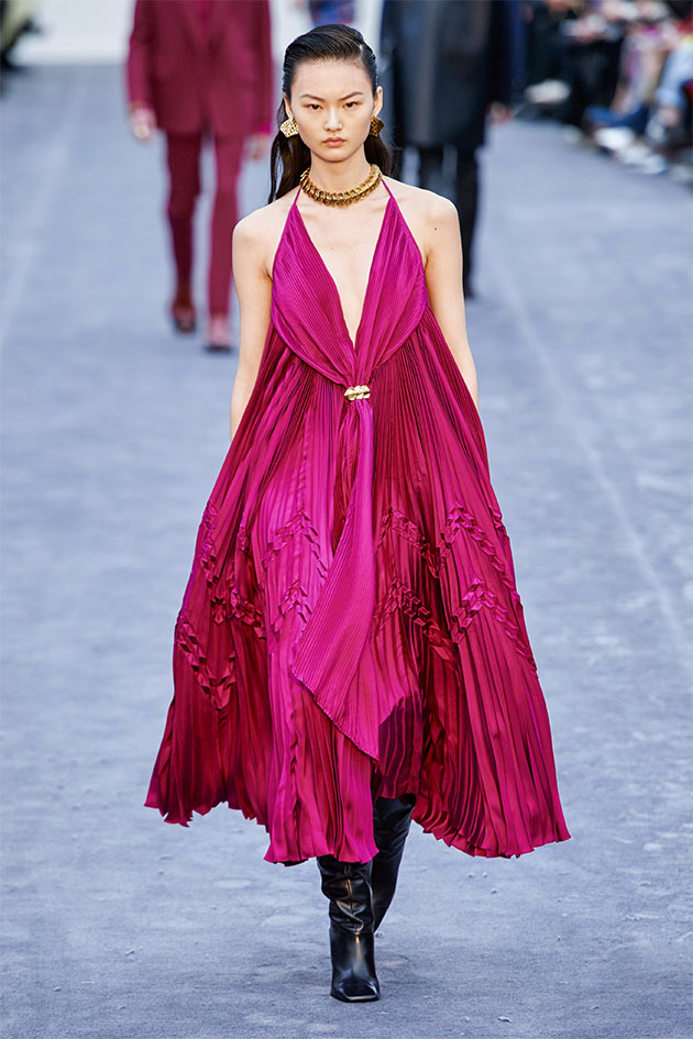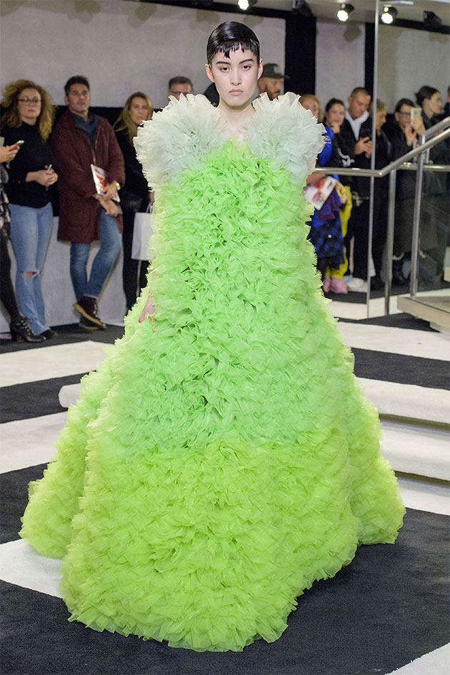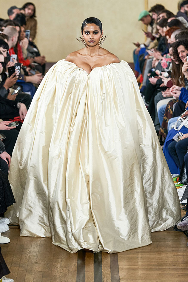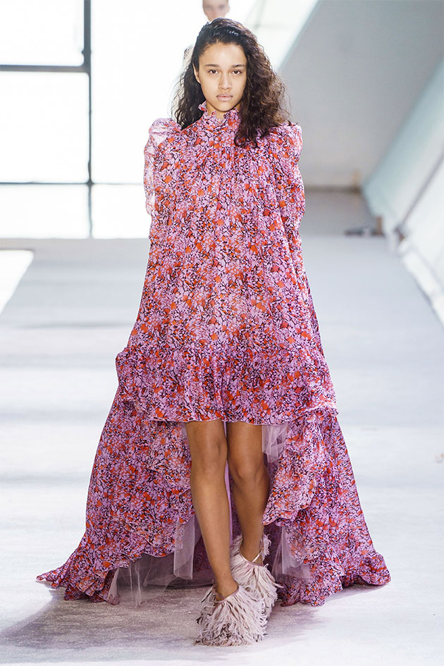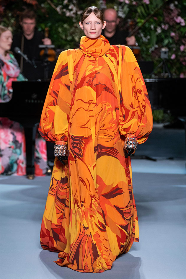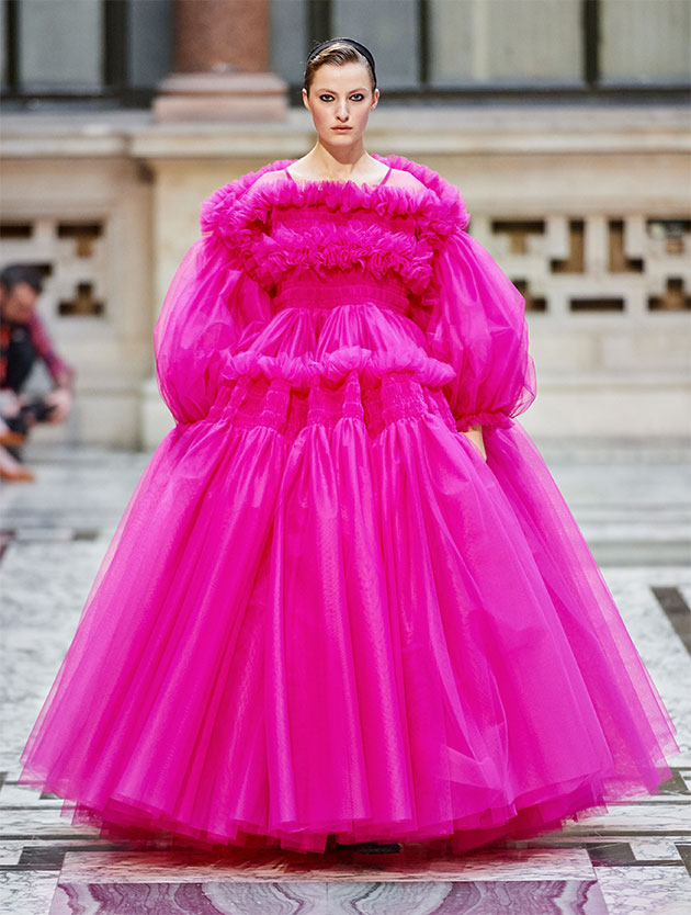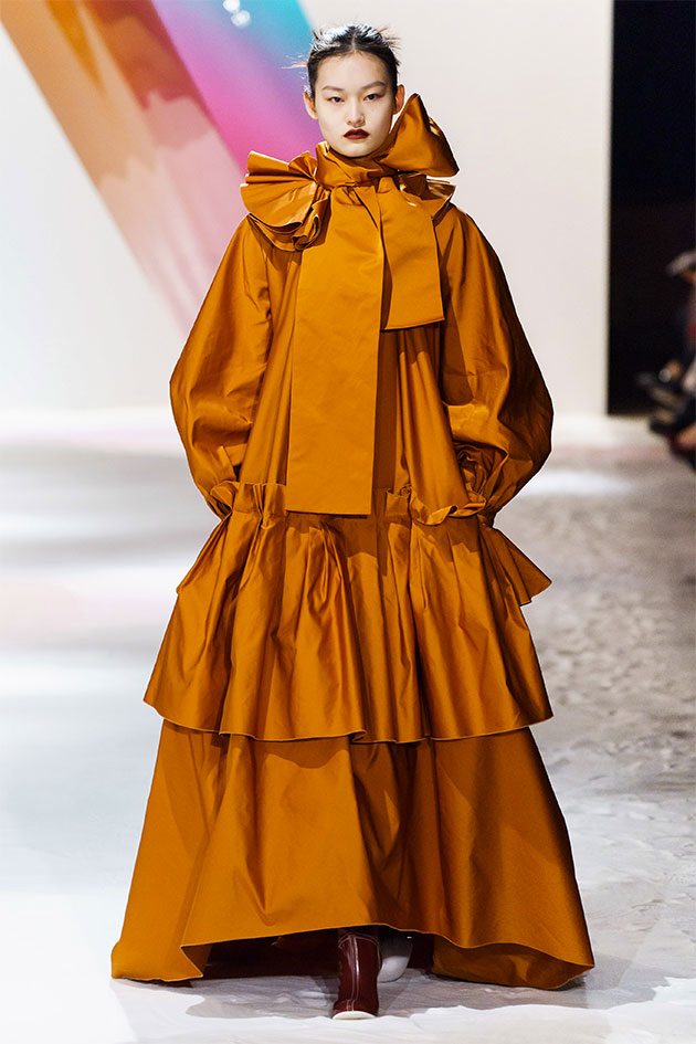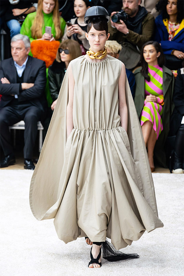 Uma das imagens recentes da moda que ficou na cabeça de todo mundo é a de Kaia Gerber no desfile de alta-costura outono-inverno 2018/19 da Valentino, com um cabelo enorme e um vestido mais enorme ainda. Tanto que Lady Gaga usou o mesmo look depois em uma das pré-estreias de “Nasce uma Estrela”! De lá pra cá, o vestidão máxi cheio de tecido, que parece quase um paraquedas, tem virado um queridinho pra quem quer arrasar numa festa com um look mais moderno – bombou no prêt-à-porter de outono-inverno 2019/20 e na alta-costura de primavera-verão 2019!