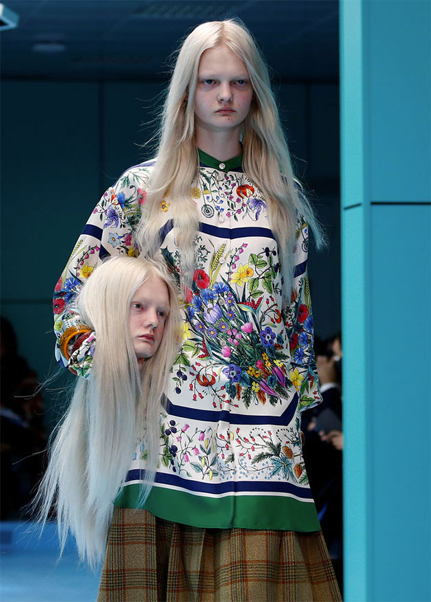 Ethan James Green/DivulgaçãoDesfile de outono-inverno 2018/19 da Gucci com modelos carregando… cabeças!