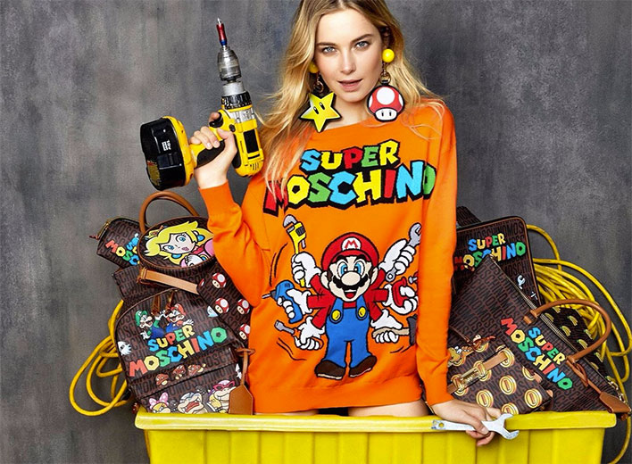 Ethan James Green/DivulgaçãoA coleção da Moschino com temática Super Mario – a marca, mesmo antes de Jeremy Scott virar o estilista, já era referência camp