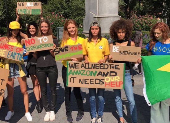 Modelos brasileiras fazem protesto em prol da Amazônia em NY